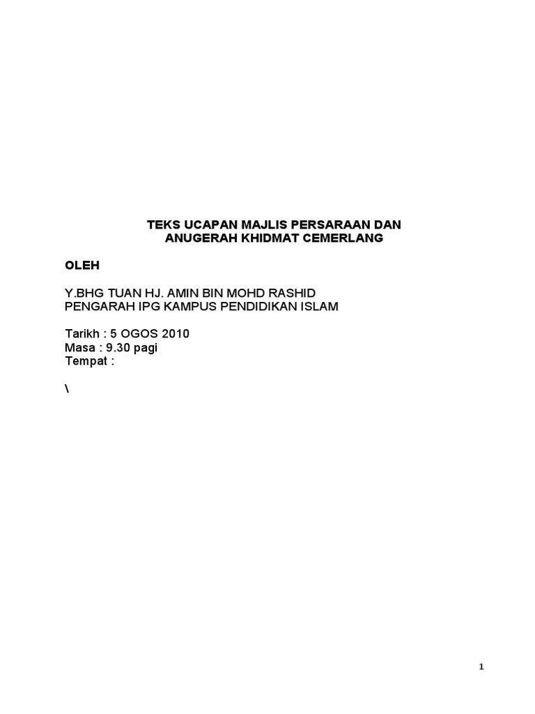 Yang berhormat tan sri bernard giluk dompok, menteri perusahaan. Teks ucapan green wave 1saidin 2012 page 1 of 7. Di majlis penyerahan anak benih . Teks ucapan pengarah program sukan. Untuk itu, majlis dengan segala hormatnya . Contoh kata sambutan perpisahan pimpinan dengan.